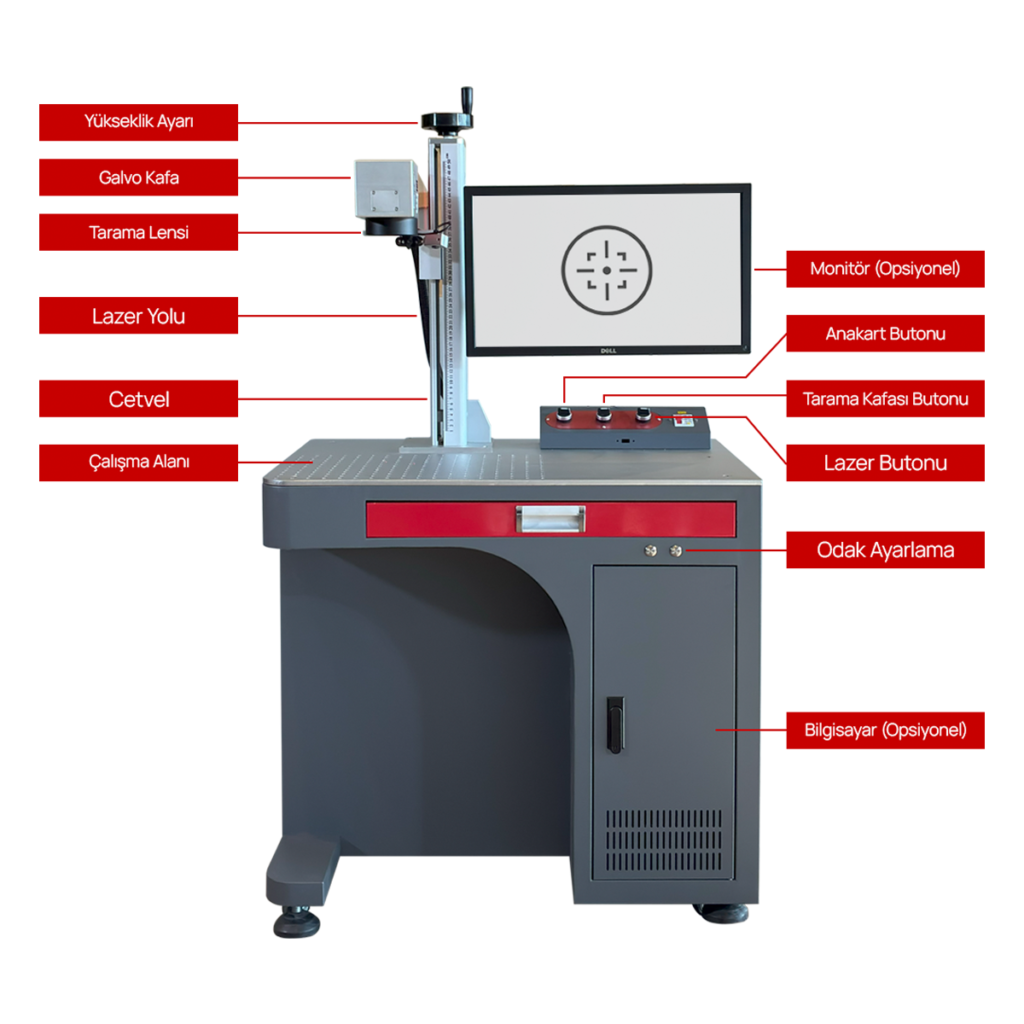 Lazer tarama kafası ya da bilinen adıyla Galvo, lazer ışığını materyale ulaştıran bileşendir. İçerisindeki çok hızlı aynalar sayesinde lazer ışığını belirtilen deseni markalayabilmesi için yönlendirir.