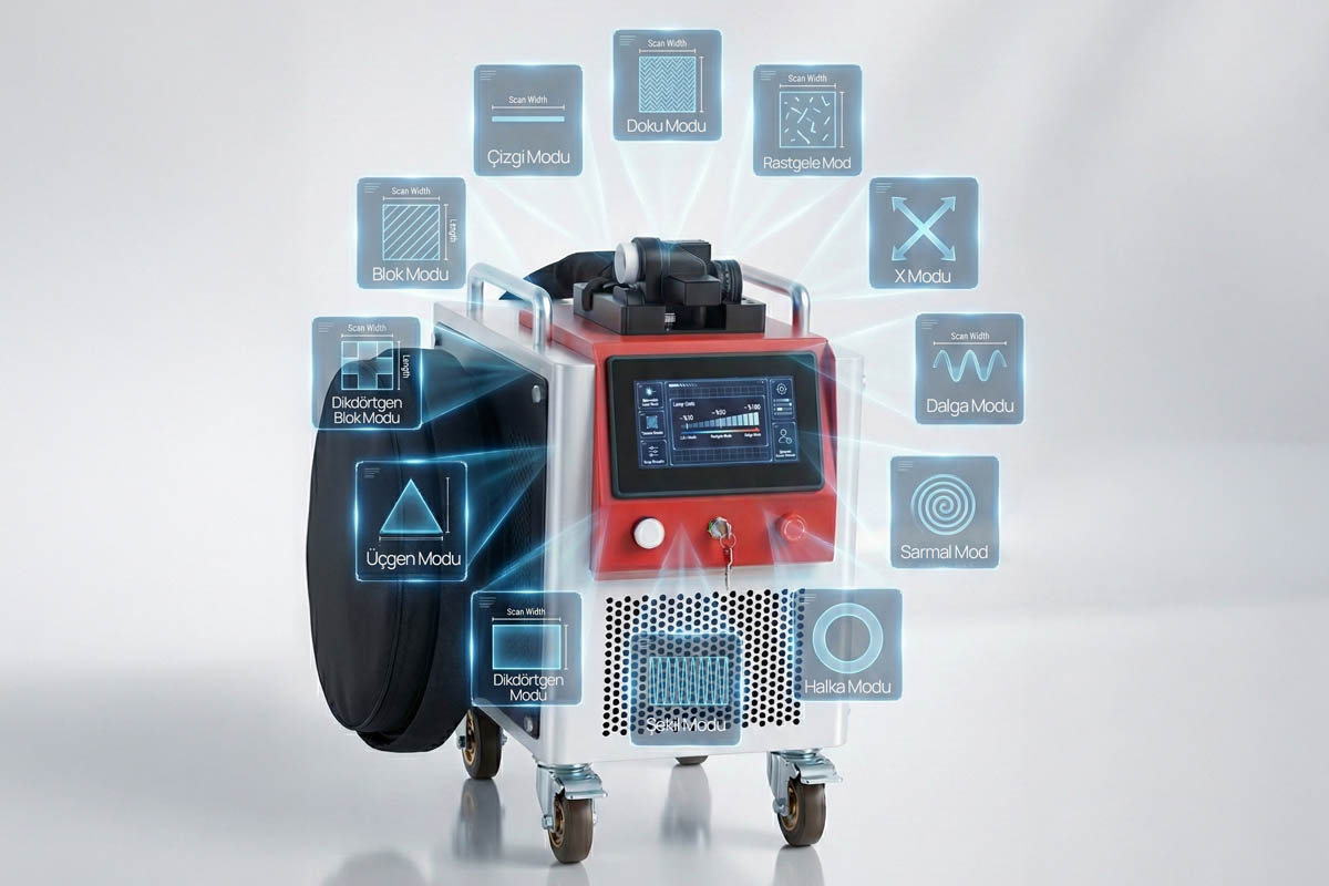 Lazer gücü %10–%100 arasında ayarlanabilirken, kullanıcı arayüzü üzerinden farklı tarama desenleri seçilerek temizleme alanı ve yoğunluğu optimize edilebilir.