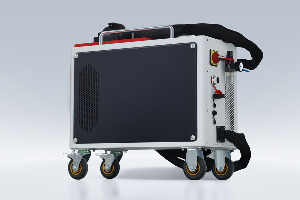 LC 500 lazer temizleme makinesi, kompakt gövde yapısı ve tekerlekli şasisi sayesinde saha içinde kolayca taşınabilir.