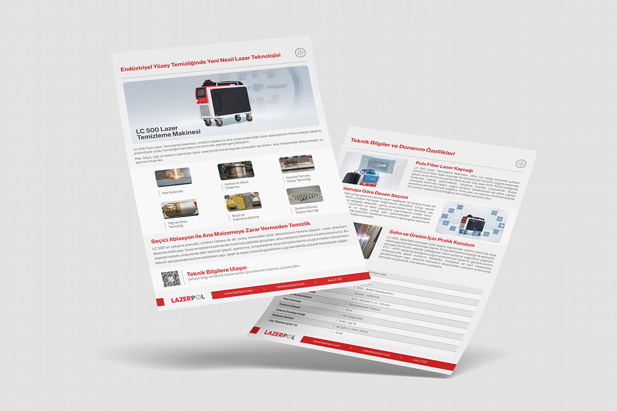 Daha fazla teknik detay ve kullanım alanları hakkında bilgi edinmek için Lazer Temizleme Makinesi LC 500 tanıtım broşürünü hemen indiriniz.
